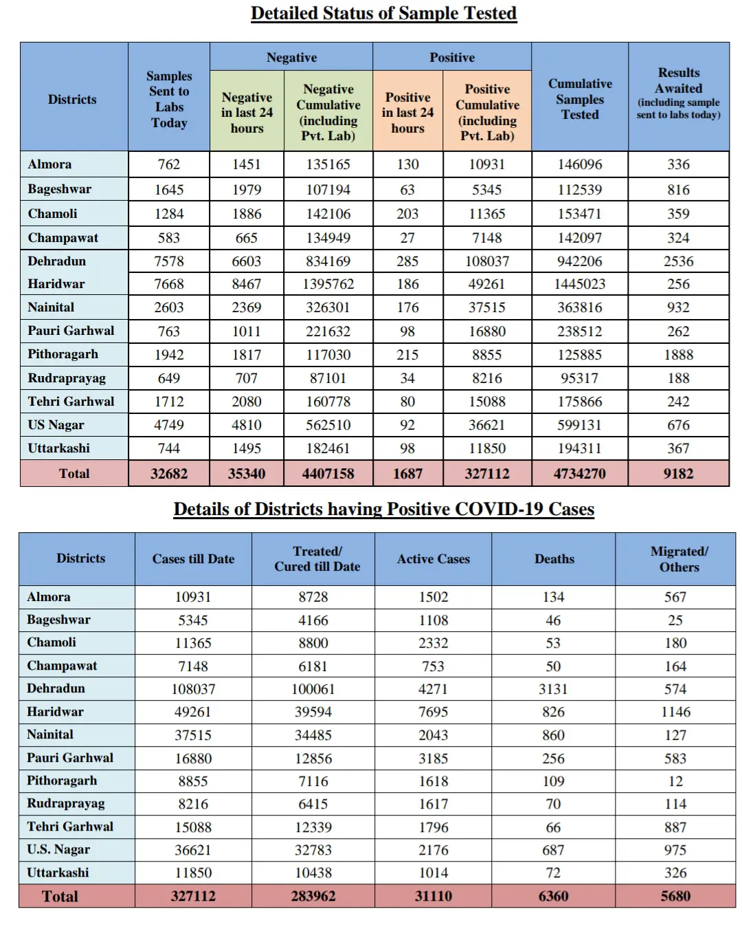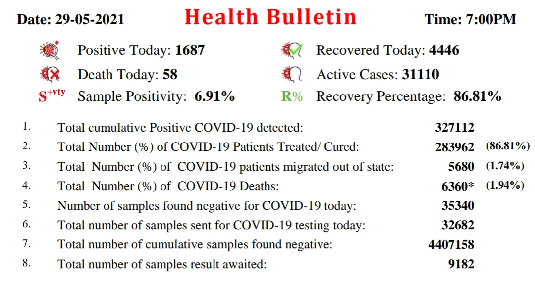 स्वास्थ्य विभाग ने जारी किया हेल्थ बुलेटिन। आज 4446 मरीज ठीक हुए ।