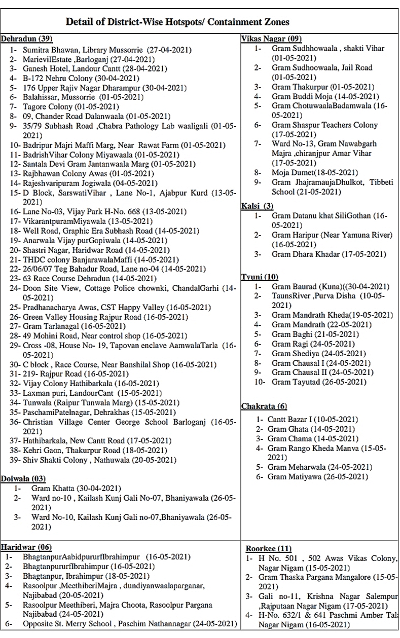 उत्तराखंड में बनाये गए हैं कुल 387 कन्टेनमेंट जोन !! HealthUttarakhand Posted on May 29, 2021May 29, 2021Share this… Facebook Twitter WhatsappShantanu BishtEditor By Shantanu Bisht