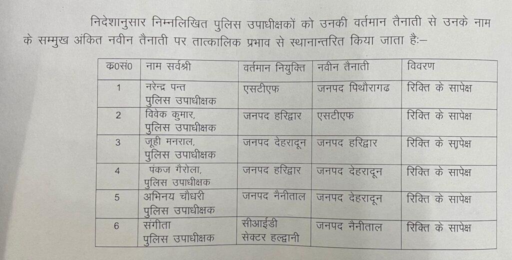 पुलिस महकमें में हुए 6 CO / DSP के तबादले !!