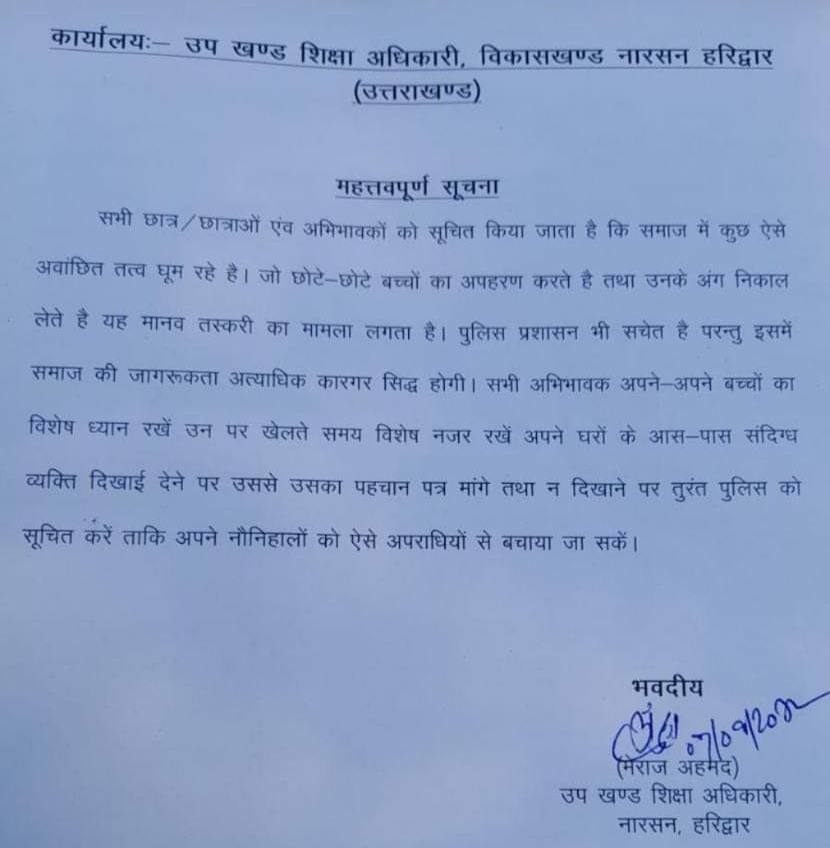 उप खण्ड शिक्षा अधिकारी के इस पत्र ने अफवाह को और बल दे दिया, अफवाह के साथ साथ यह पत्र भी सोशल मीडिया पर वायरल होने लगा !!