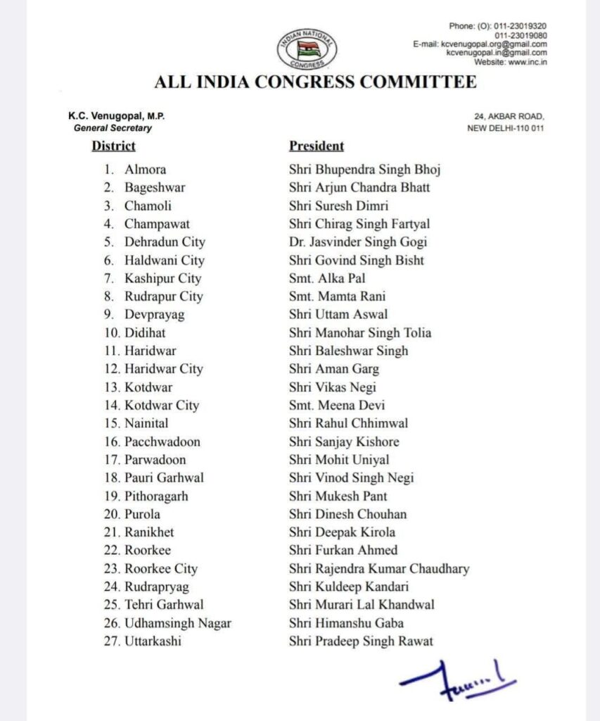 कांग्रेस हाईकमान ने उत्तराखंड में संगठनात्मक फेरबदल करते हुए गणेश गोदियाल को प्रदेश कांग्रेस कमेटी का नया अध्यक्ष नियुक्त किया है।
