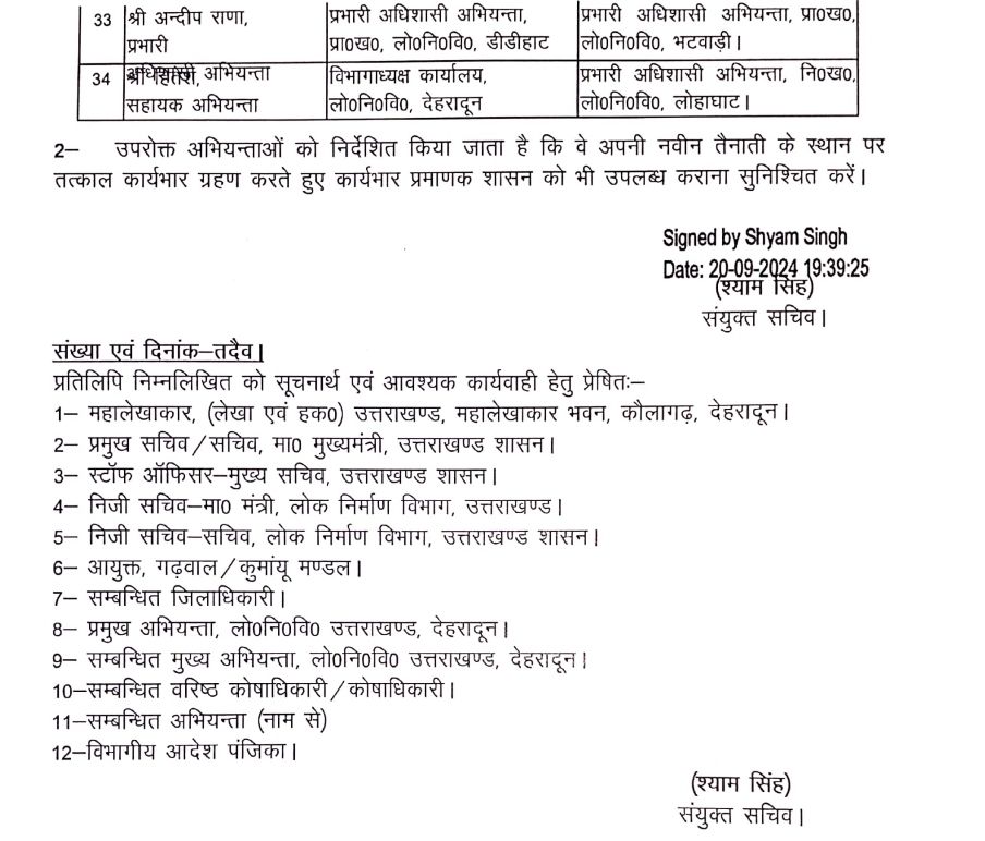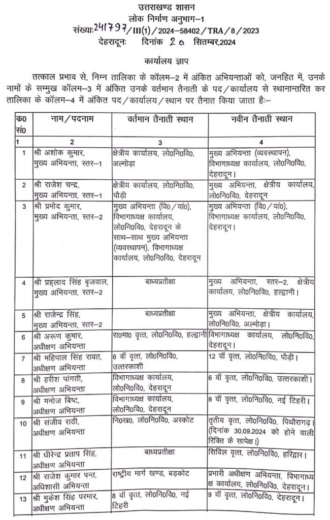 PWD विभाग में हुए अभियंताओं के बम्पर तबादले, शासन ने जारी किया आदेश !! PrimeUttarakhand Posted on September 20, 2024September 20, 2024Share this… Facebook Twitter WhatsappShantanu BishtEditor By Shantanu Bisht