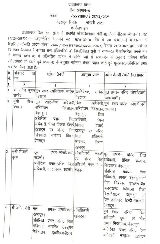 वित्त विभाग में हुए बंपर तबादले, कई जिलों के कोषाधिकारी व कई विभागों के FC बदले गए !! AdministrationUttarakhand Posted on January 11, 2023January 11, 2023वित्त विभाग में हुए बंपर तबादले, कई जिलों के कोषाधिकारी व कई विभागों के FC बदले गए !!Share this… Facebook Twitter WhatsappShantanu BishtEditor By Shantanu Bisht