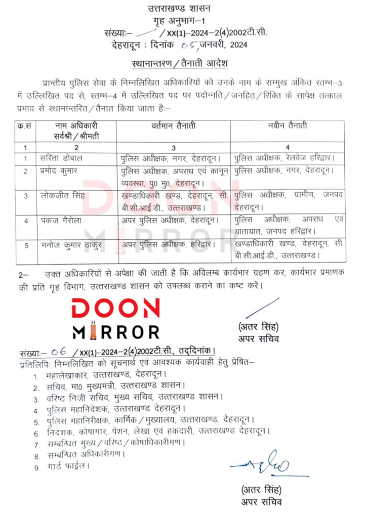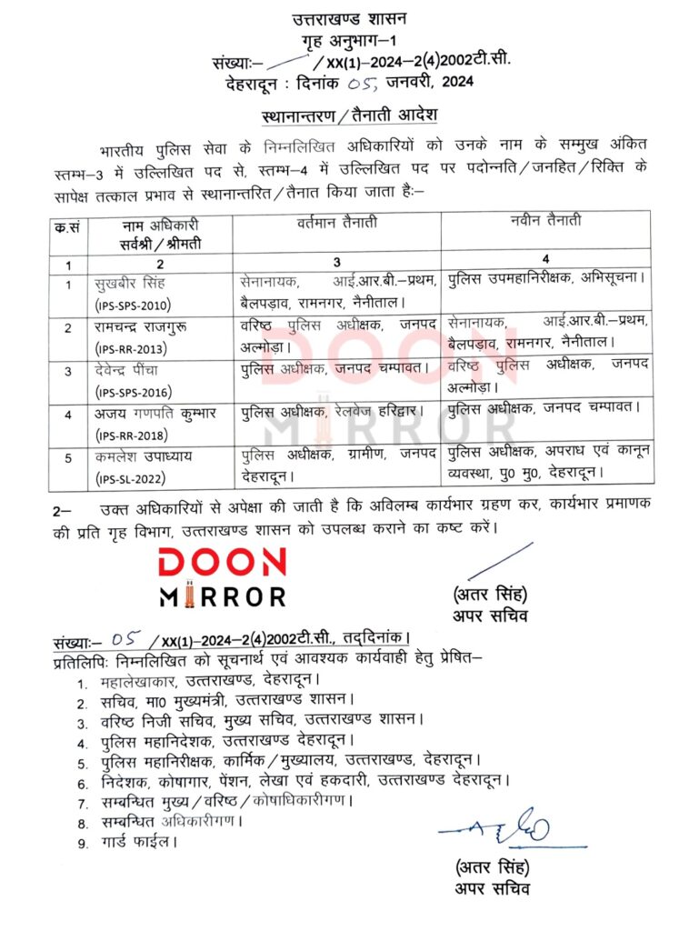 उत्तराखंड पुलिस महकमें में हुए IPS व PPS अधिकारियों के बम्पर तबादले !!