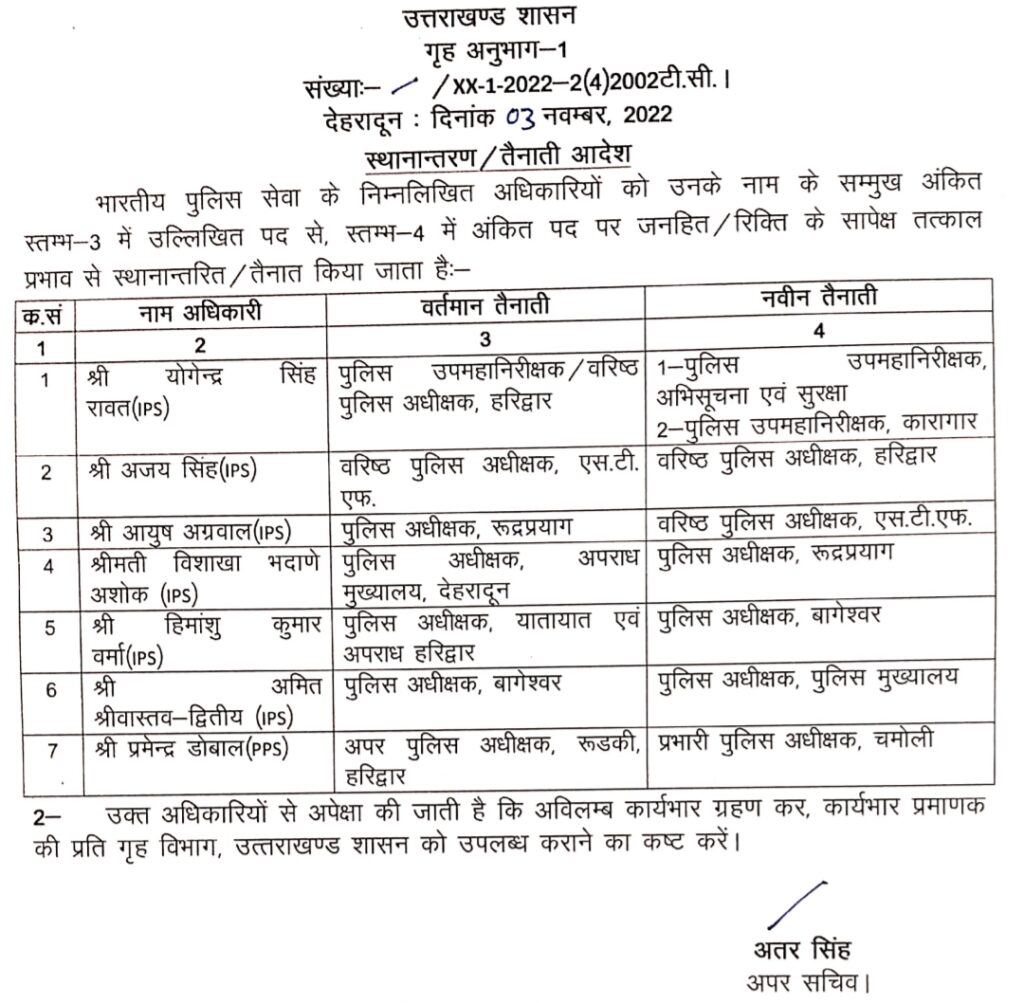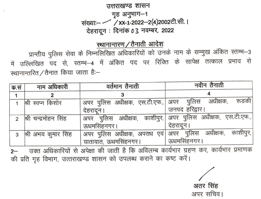 उत्तराखंड में IPS – PPS अधिकारियों के हुए बंपर तबादले, हरिद्वार सहित कई जनपदों के बदले गए SSP !! AdministrationUttarakhand Posted on November 3, 2022November 3, 2022Share this… Facebook Twitter WhatsappShantanu BishtEditor By Shantanu Bisht