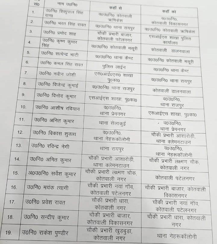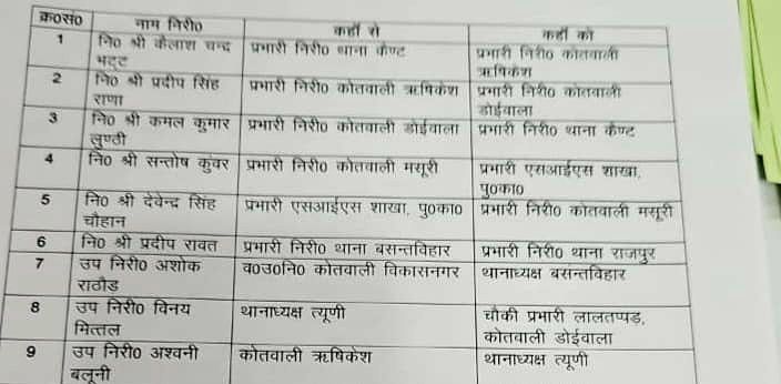 IG गढ़वाल के निर्देश के बाद खराब छवि वाले पुलिस कर्मचारियों की हिलाई गयी कुर्सी, कोतवाल व थानाध्यक्ष से लेकर कई चौकी प्रभारी बदले गए !!