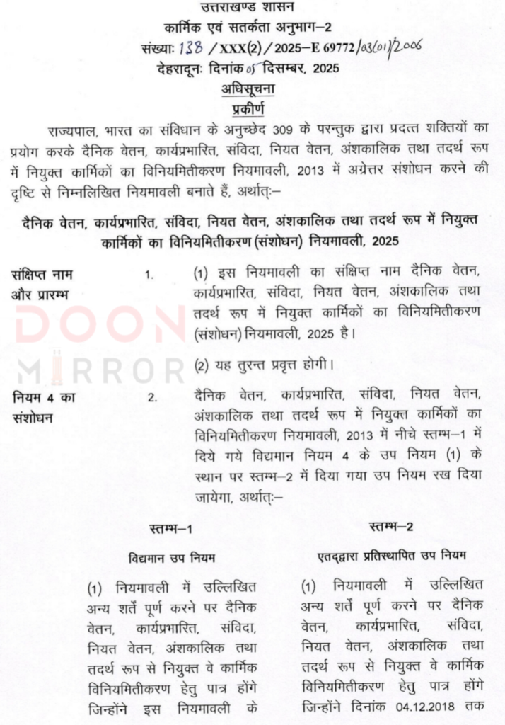 शासन ने जारी की दैनिक वेतन व संविदा कर्मचारियों की संशोधित विनियमितीकरण नियमावली !!