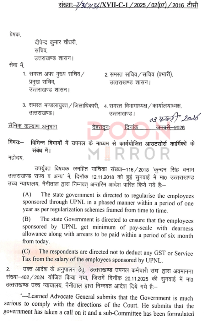 ‘समान कार्य – समान वेतन’ से जुड़ा शासनादेश हुआ जारी !! PrimeUttarakhand Posted on February 3, 2026February 3, 2026‘समान कार्य – समान वेतन’ से जुड़ा शासनादेश हुआ जारी !!Share this… Facebook Twitter WhatsappShantanu BishtEditor By Shantanu Bisht
