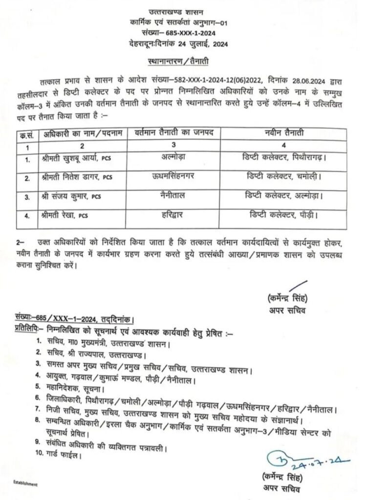 शासन ने किए 4 PCS अधिकारियों के तबादले !! AdministrationUttarakhand Posted on July 24, 2024July 24, 2024शासन ने किए 4 PCS अधिकारियों के तबादले !!Share this… Facebook Twitter WhatsappShantanu BishtEditor By Shantanu Bisht