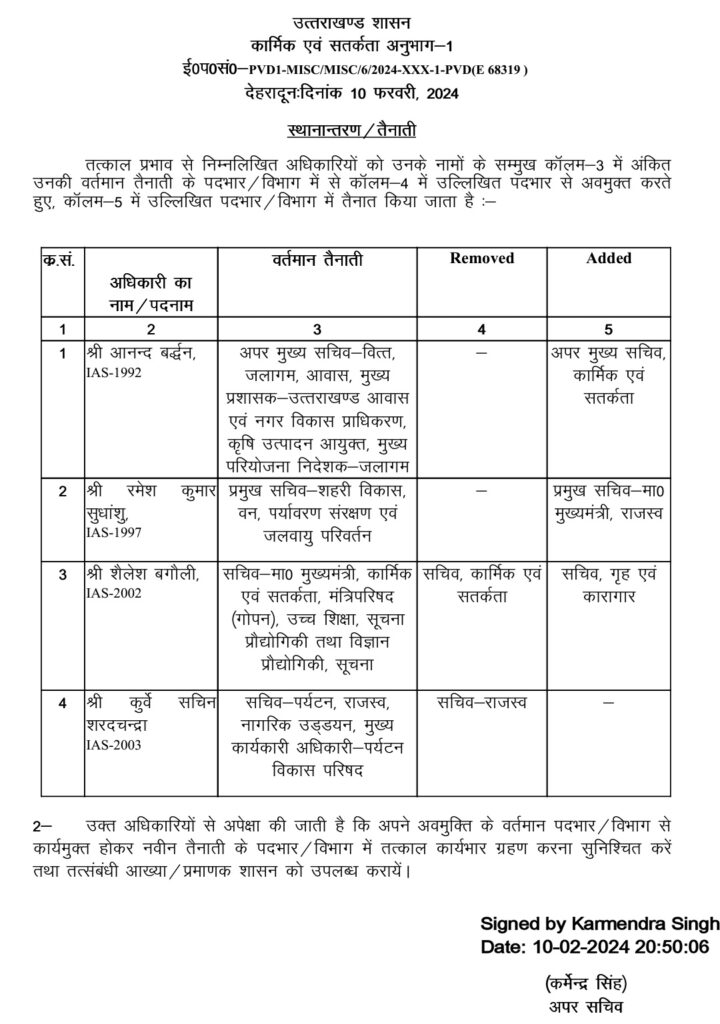 शासन ने जारी की विभिन्न सचिवों के लिंक अधिकारियों की  नवीन सूची, वंही इस IAS अधिकारी के प्रभार भी अस्थायी रूप से दूसरे से दिए गए।