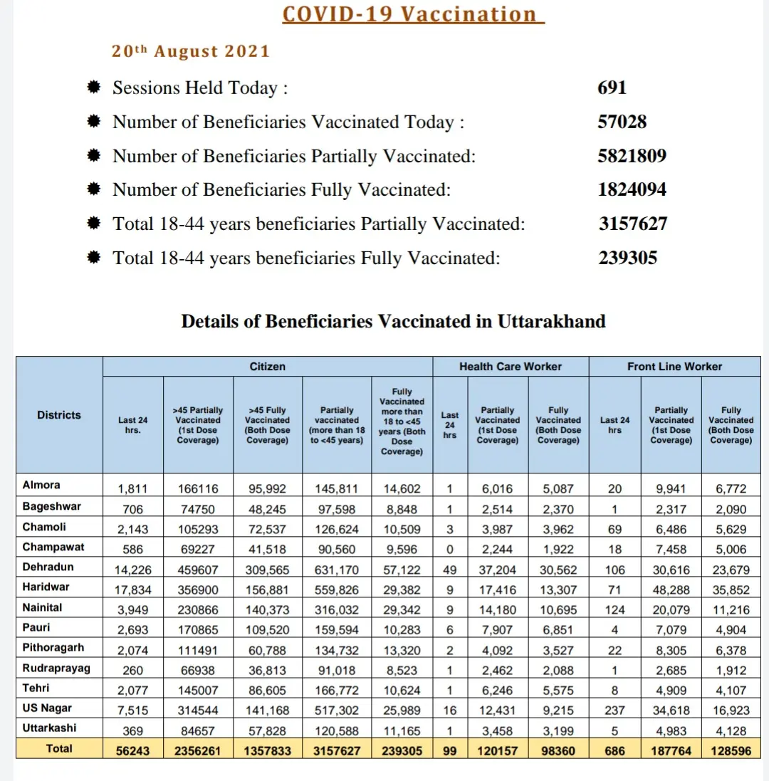 स्वास्थ्य विभाग ने जारी किया कोविड हेल्थ बुलेटिन !! HealthUttarakhand Posted on August 20, 2021August 20, 2021स्वास्थ्य विभाग ने जारी किया कोविड हेल्थ बुलेटिन !!Share this… Facebook Twitter WhatsappShantanu BishtEditor By Shantanu Bisht