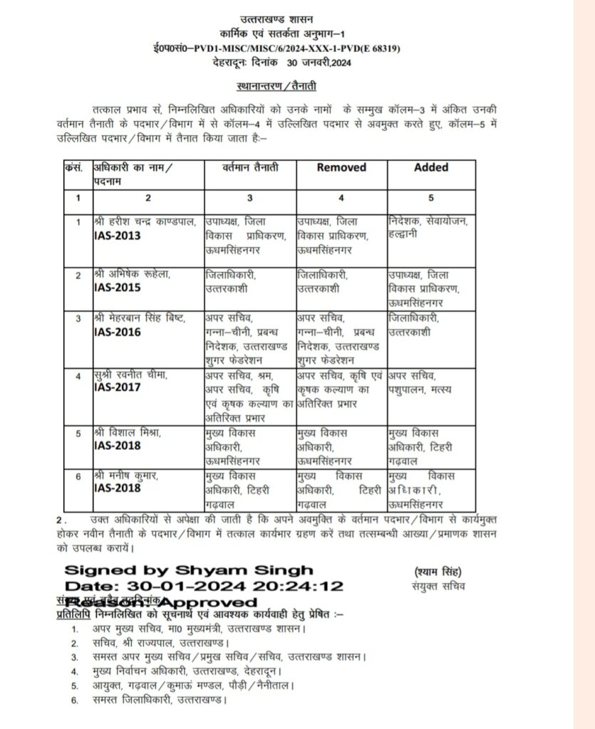 शासन में हुए IAS अधिकारियों के तबादले, बदले गए यहां के DM !! PrimeUttarakhand Posted on January 30, 2024January 30, 2024शासन में हुए IAS अधिकारियों के तबादले, बदले गए उत्तरकाशी के DM !!Share this… Facebook Twitter WhatsappShantanu BishtEditor By Shantanu Bisht
