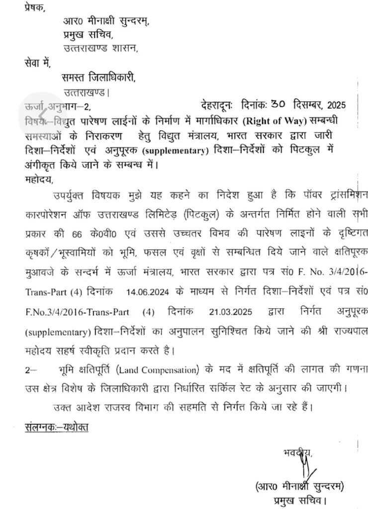 उत्तराखंड में विशाल विद्युत टावर एवं HT लाइन के नीचे की भूमि का मुआवजा कई गुना बढ़ा, शासन ने जारी किए आदेश !!