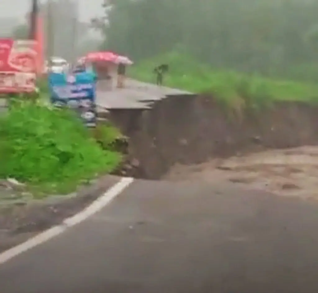 न्यू खेरी रोड का 20 फीट का हिस्सा नदी में बह गया है