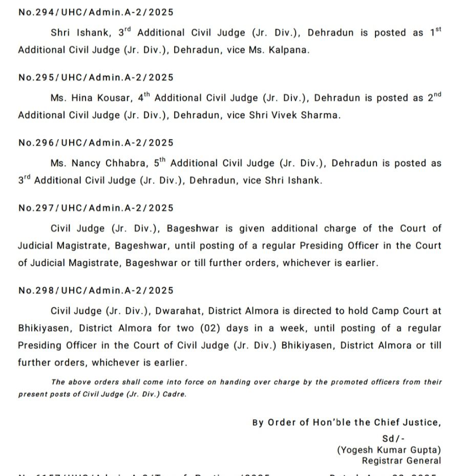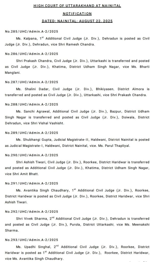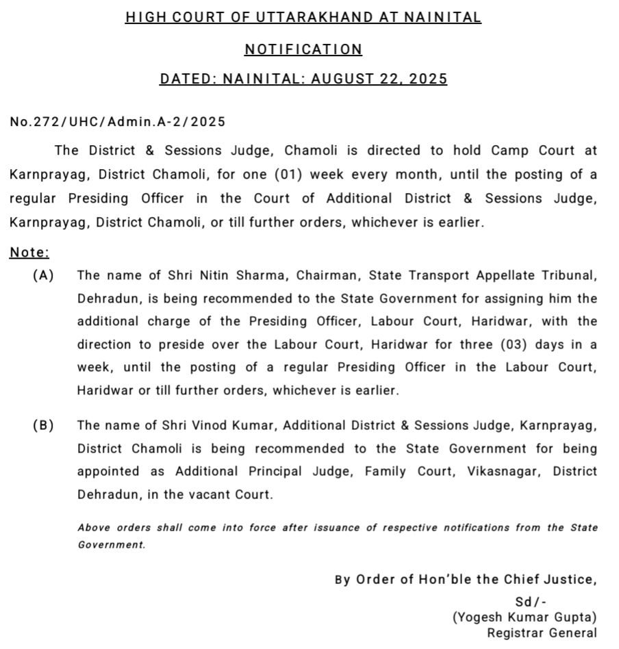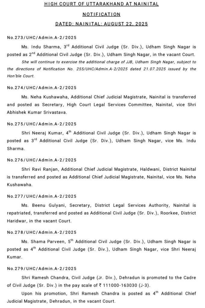नैनीताल हाइकोर्ट ने किए कई जिला स्तरीय न्यायाधीशों के तबादले !!