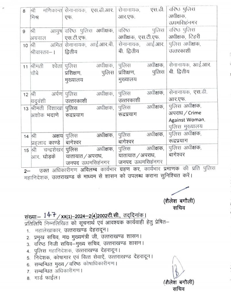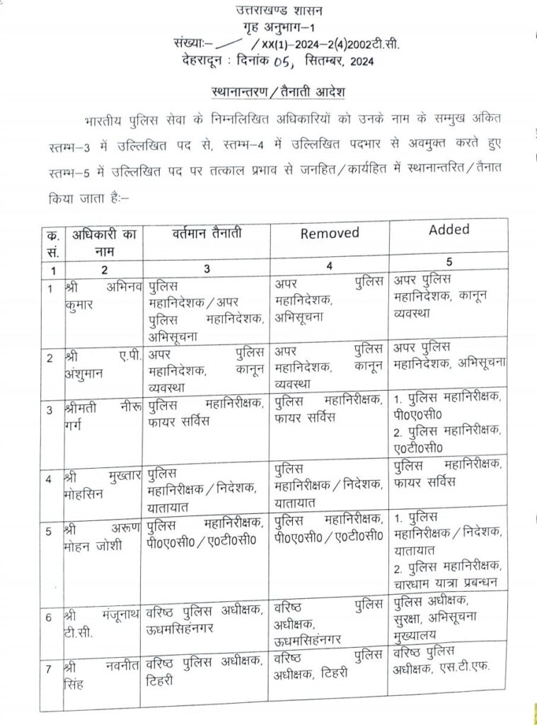 लो अब आ गयी IPS की लिस्ट, 5 जनपदों के कप्तान बदले गए, वंही PHQ स्तर पर भी दायित्वों में किया गया बदलाव !! PrimeUttarakhand Posted on September 5, 2024September 5, 2024बहुप्रतीक्षित IPS तबादला सूची आखिरकार आज आगयी है।Share this… Facebook Twitter WhatsappShantanu BishtEditor By Shantanu Bisht