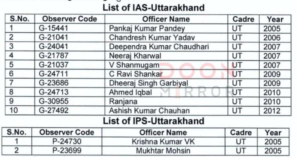 बिहार विधानसभा चुनाव की तैयारियों के बीच निर्वाचन आयोग ने देशभर से विभिन्न अधिकारियों की नियुक्ति ऑब्जर्वर के रूप में की है। इस क्रम में उत्तराखंड के 12 आईएएस – आईपीएस अधिकारियों को भी बिहार चुनाव में ऑब्जर्वर ड्यूटी सौंपी गई है।