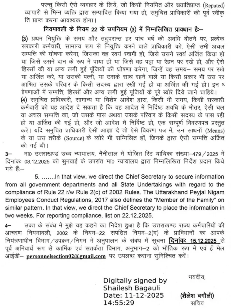 कार्मिक विभाग ने मांगी समस्त सरकारी कर्मचारियों के अचल सम्पतियों की सूचना, आदेश हुए जारी !!