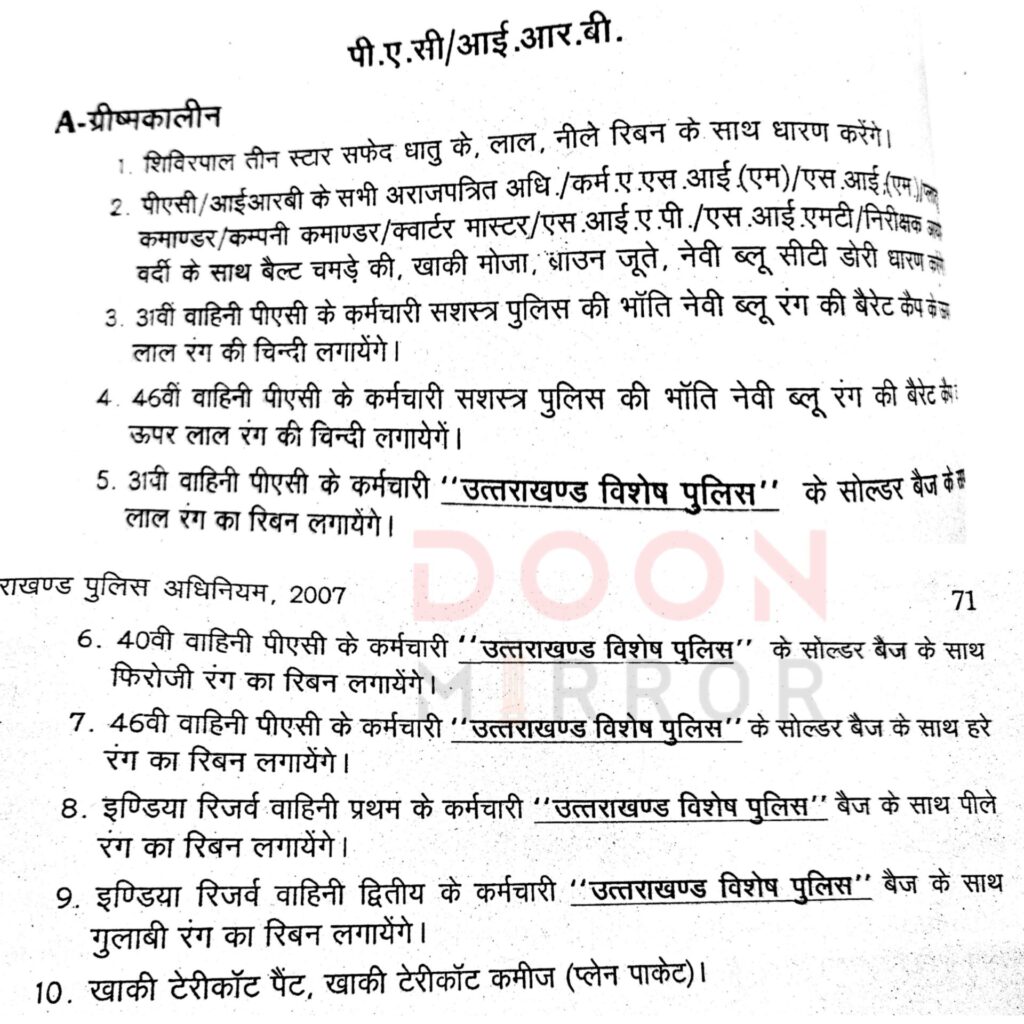 वर्दी नियमावली के अनुसार, IRB और PAC की अलग पहचान सुनिश्चित करने के लिए ‘उत्तराखंड विशेष पुलिस’ का बैज और निर्धारित रंग के रिबन अनिवार्य हैं। इसके बावजूद जमीनी स्तर पर इसका पालन नहीं हो रहा है। इससे न केवल विभागीय अनुशासन प्रभावित हो रहा है, बल्कि आम जनता के बीच भी भ्रम की स्थिति बन रही है।