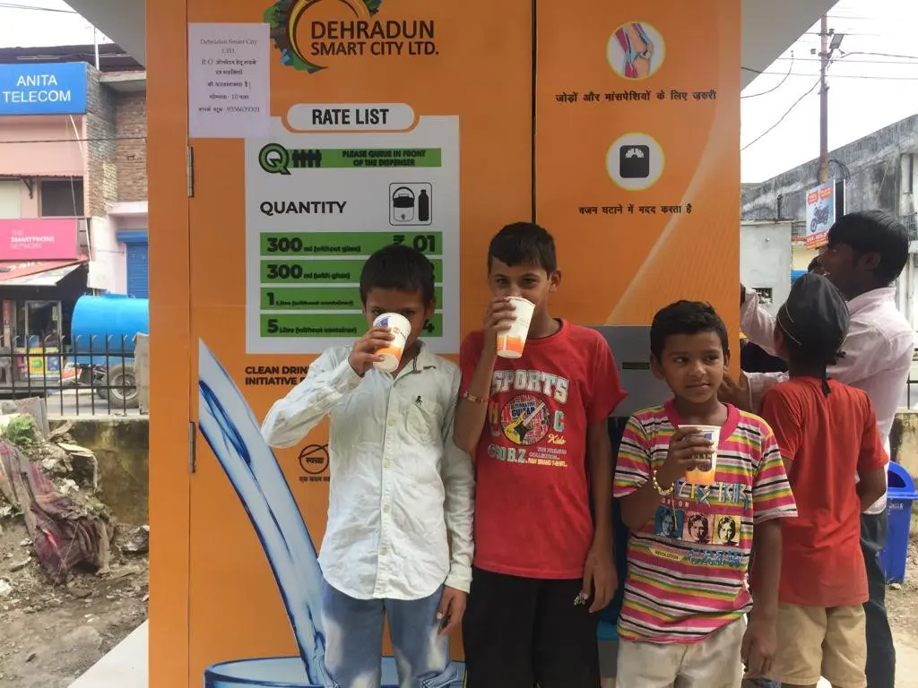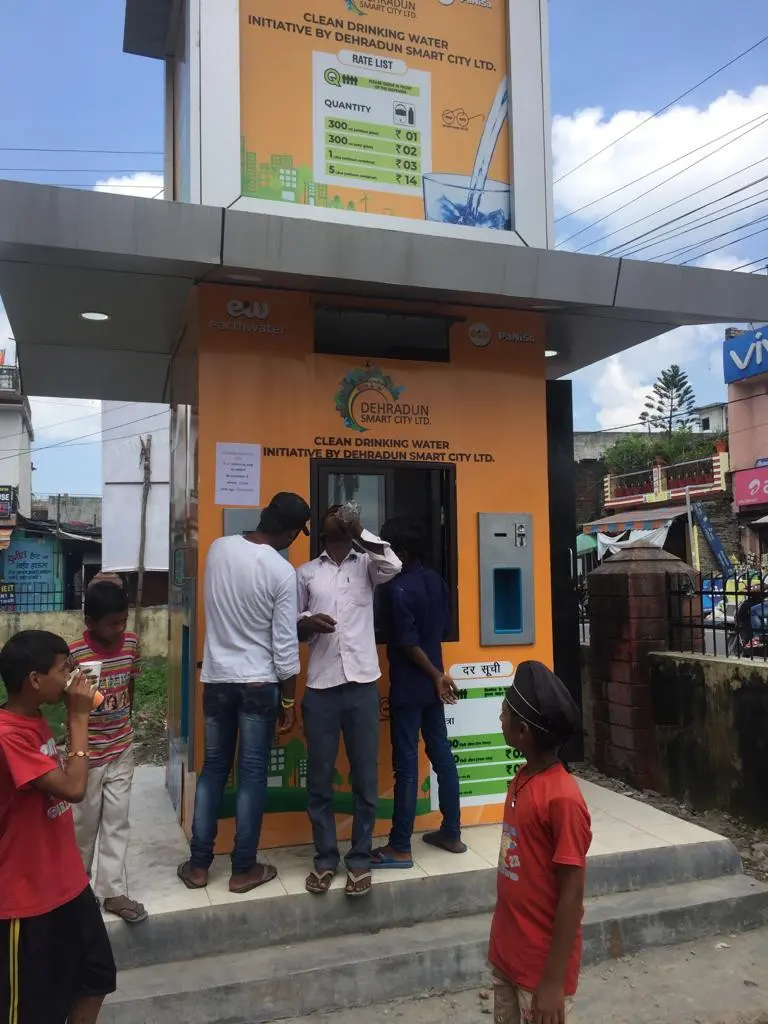 स्मार्ट सिटी प्लान के अन्तर्गत देहरादून शहर में 24 स्थानों पर वाटर ए0टी0एम लगाए जाने है। इसके अन्तर्गत कम मूल्य में शुद्ध पेयजल, सार्वजनिक स्थानों पर उपलब्ध कराया जाना है। यह परियोजना पी0पी0पी0 मोड पर संचालित की जा रही है, एवं सार्वजनिक स्थानों पर आर0ओ0 वाटर की सुविधा निम्न विवरण एवं सुविधाओं के आधार पर की जा रही है ।