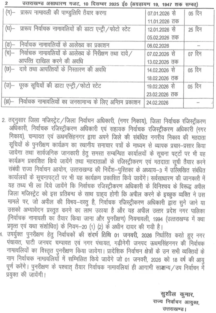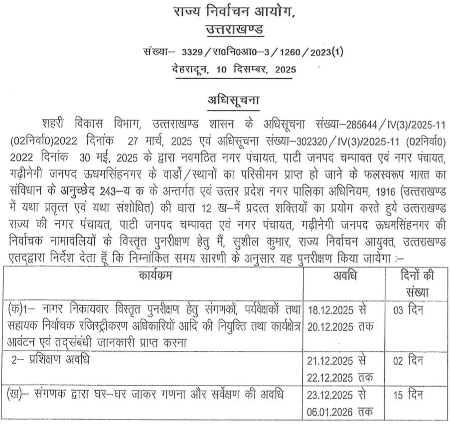 राज्य निर्वाचन आयोग ने दो नवगठित नगर पंचायत (नगर पंचायत पाटी, जनपद चंपावत एवं नगर पंचायत गढ़ीनेगी, जनपद उधमसिंहनगर) में आगामी चुनावों को लेकर जारी किए दिशा निर्देश !!