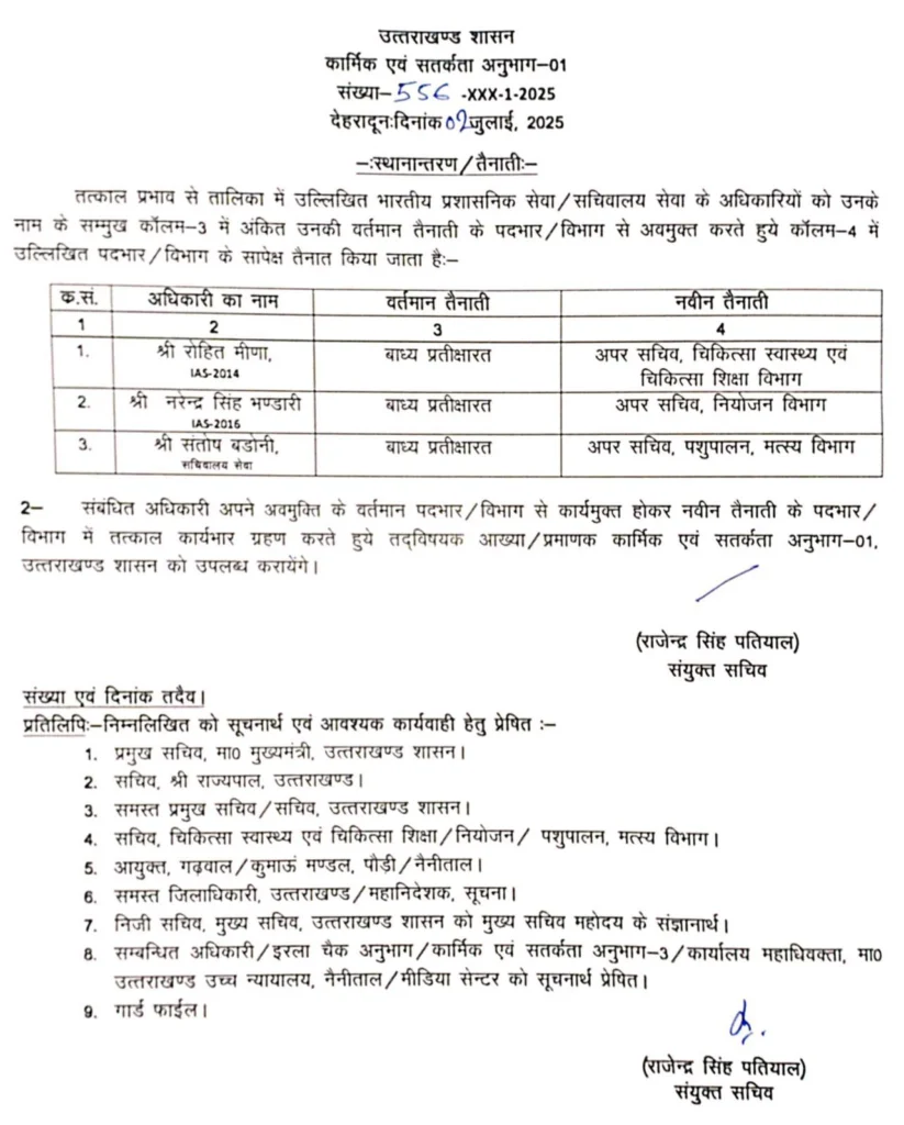 शासन ने 2 IAS सहित 3 अधिकारियों दी नवीन जिम्मेदारी !! AdministrationUttarakhand Posted on July 3, 2025July 3, 2025शासन ने 2 IAS सहित 3 अधिकारियों दी नवीन जिम्मेदारी !!Share this… Facebook Twitter WhatsappShantanu BishtEditor By Shantanu Bisht