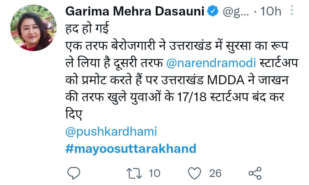 इस कार्रवाई के बाद से सियासी गलियारों में भी चर्चा काफी तेज है, कांग्रेस की प्रवक्ता गरिमा धसौनी ट्विटर पर लिखती है कि –