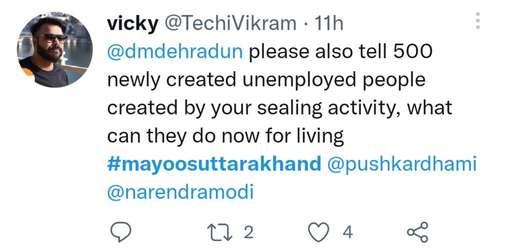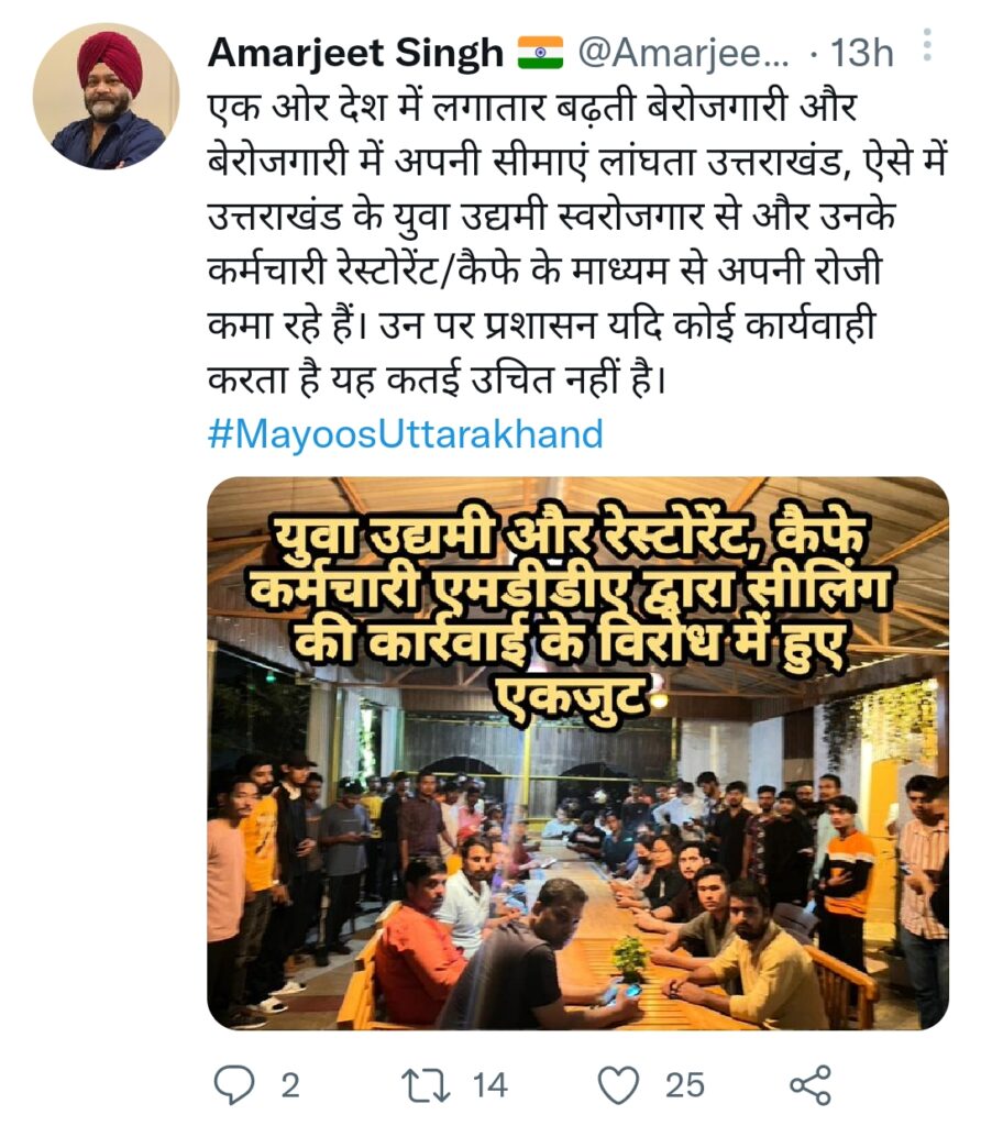 कार्रवाई के बाद से ही देहरादून वासियों व फ़ूड वलॉगर्स ने मानो ट्विटर व इंस्टाग्राम में MDDA के खिलाफ जंग छेड़ दी है, कल रात से ही हैशटैग #मायूस_उत्तराखंड ट्रेंड करने लग गया है