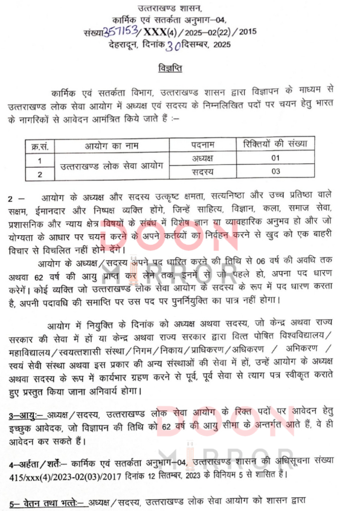 राज्य सरकार ने UKPSC में स्थायी चेयरमैन व 3 नए सदस्य बैठाने का बनाया मन, कार्मिक विभाग ने जारी की विज्ञप्ति आदेश !!