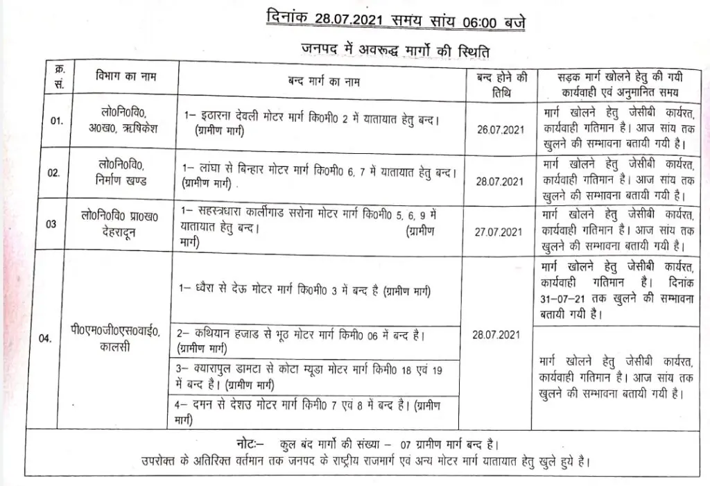 जिस कारण यह मार्ग फिलहाल बन्द है व इन मार्गों को खोलने का कार्य जारी है !!