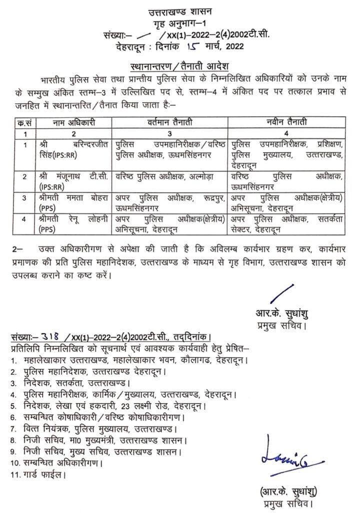 आचार संहिता खत्म होते ही इन आईपीएस व पीपीएस अधिकारियों के हुए ट्रांसफर !!