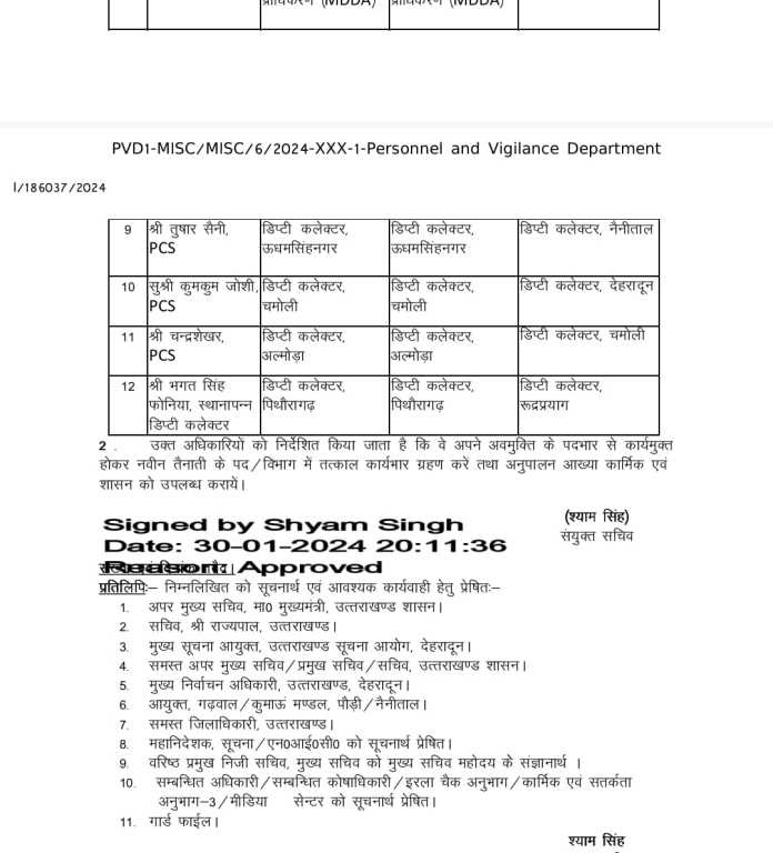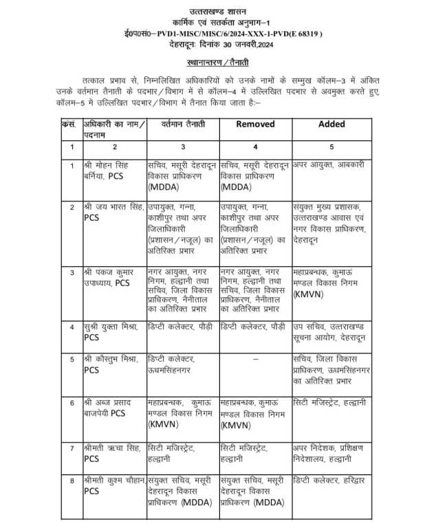 उत्तराखंड के इन PCS व PPS का हुआ तबादला, देखें आदेश !! AdministrationUttarakhand Posted on January 30, 2024January 30, 2024उत्तराखंड के इन PCS व PPS का हुआ तबादला !!Share this… Facebook Twitter WhatsappShantanu BishtEditor By Shantanu Bisht