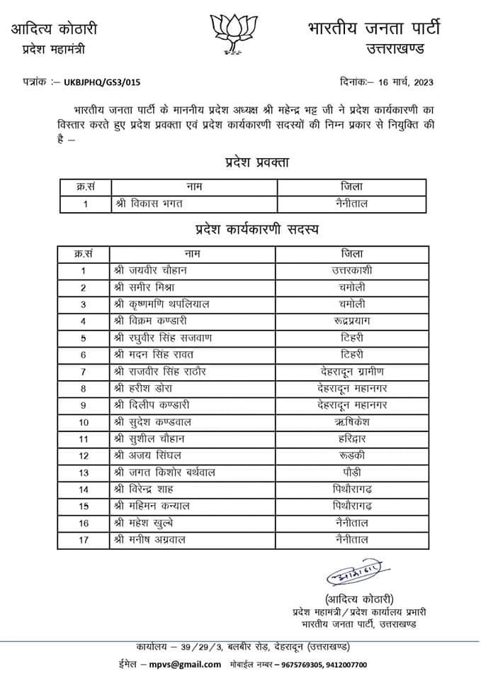 उत्तराखंड भाजपा ने अपने संगठन का किया विस्तार, अब इन नेताओं को दी गई जिम्मेदारी !! PoliticsUttarakhand Posted on March 16, 2023March 16, 2023भारतीय जनता पार्टी उत्तराखंड ने किया संगठन का विस्तारShare this… Facebook Twitter WhatsappShantanu BishtEditor By Shantanu Bisht