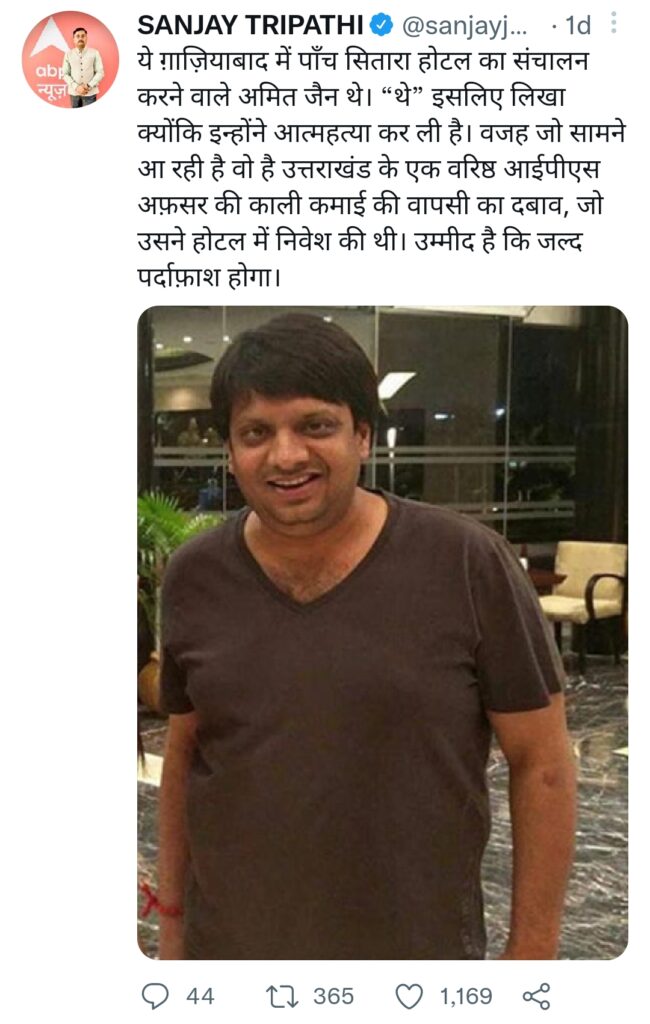 उक्त मामले के तार उत्तराखंड के एक IPS के साथ तब जुड़े जब एक राष्ट्रीय चैनल के एक वरिष्ठ पत्रकार ने कुछ इस प्रकार से ट्वीट किया।