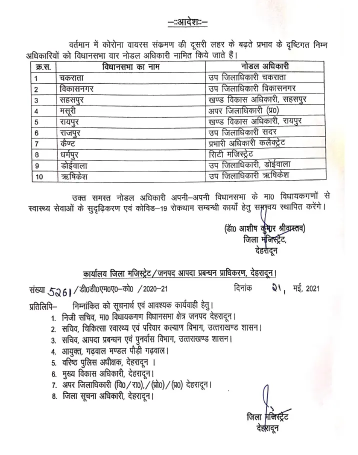 जिलाधिकारी देहरादून ने विभिन्न अधिकारियों को विधानसभा वार नोडल अधिकारी नामित किया है ।।