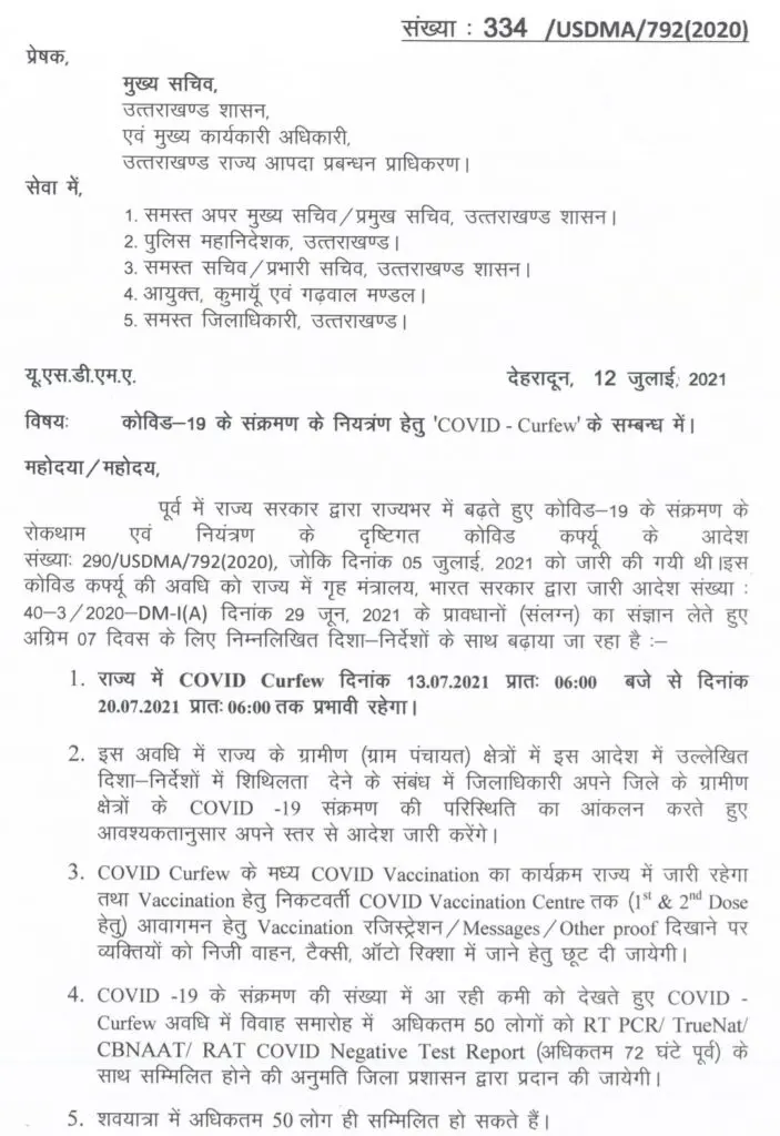 उत्तराखंड में बढ़ाया गया कोविड कर्फ्यू