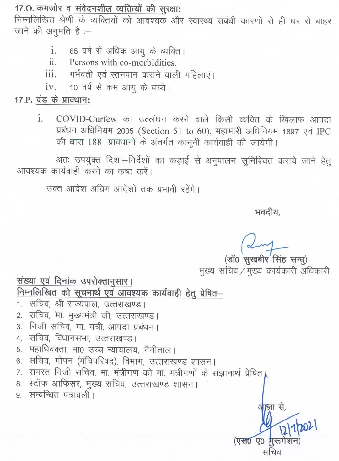 नए मुख्य सचिव ने जारी करी कोविड कर्फ्यू की नई गाईडलाइन !!