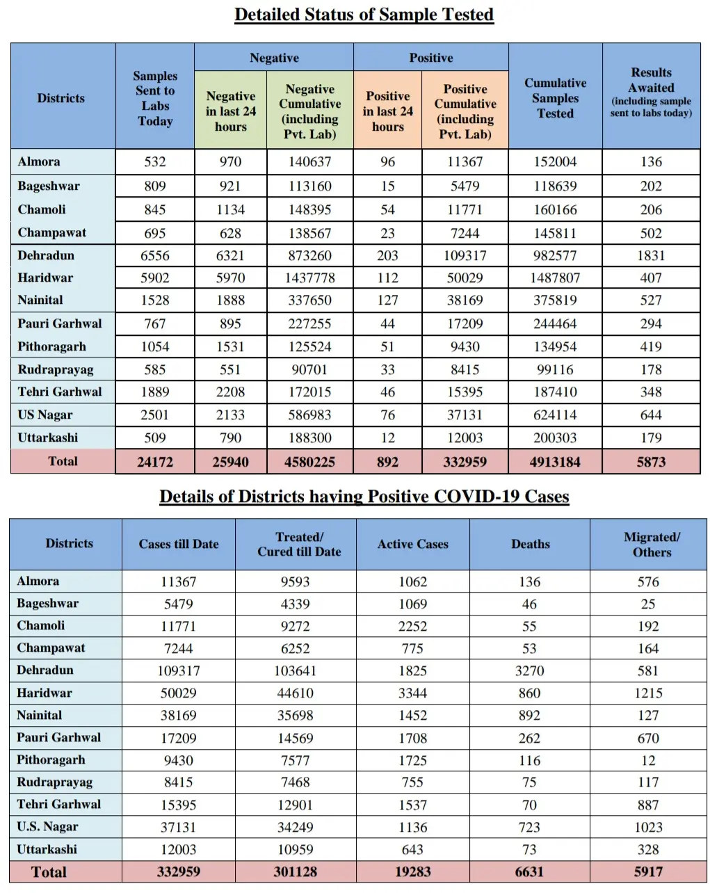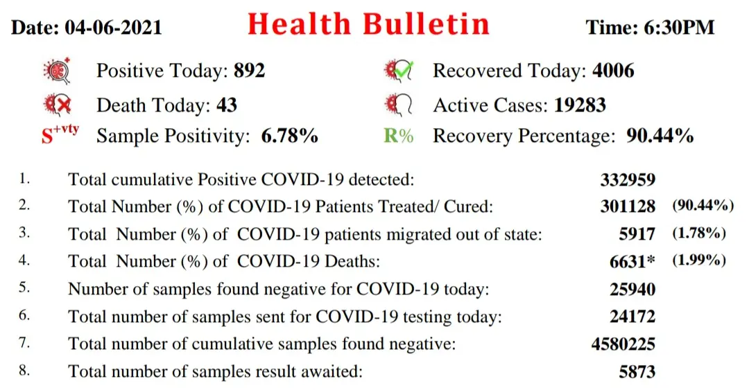 उत्तराखंड में आज कोरोना के 892 मामले सामने आए हैं, वही 4006 मरीज कोरोना संक्रमण से मुक्त हो गए हैं !!